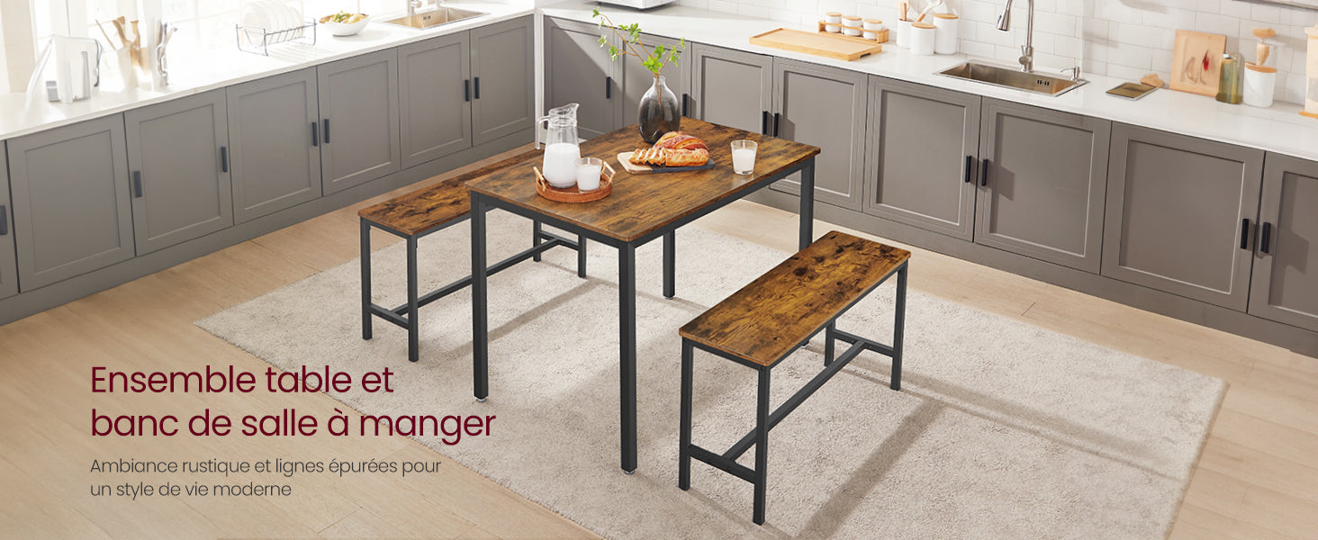 Ensemble Table à Manger avec 2 Bancs – 3 pièces, Style Industriel Rustique