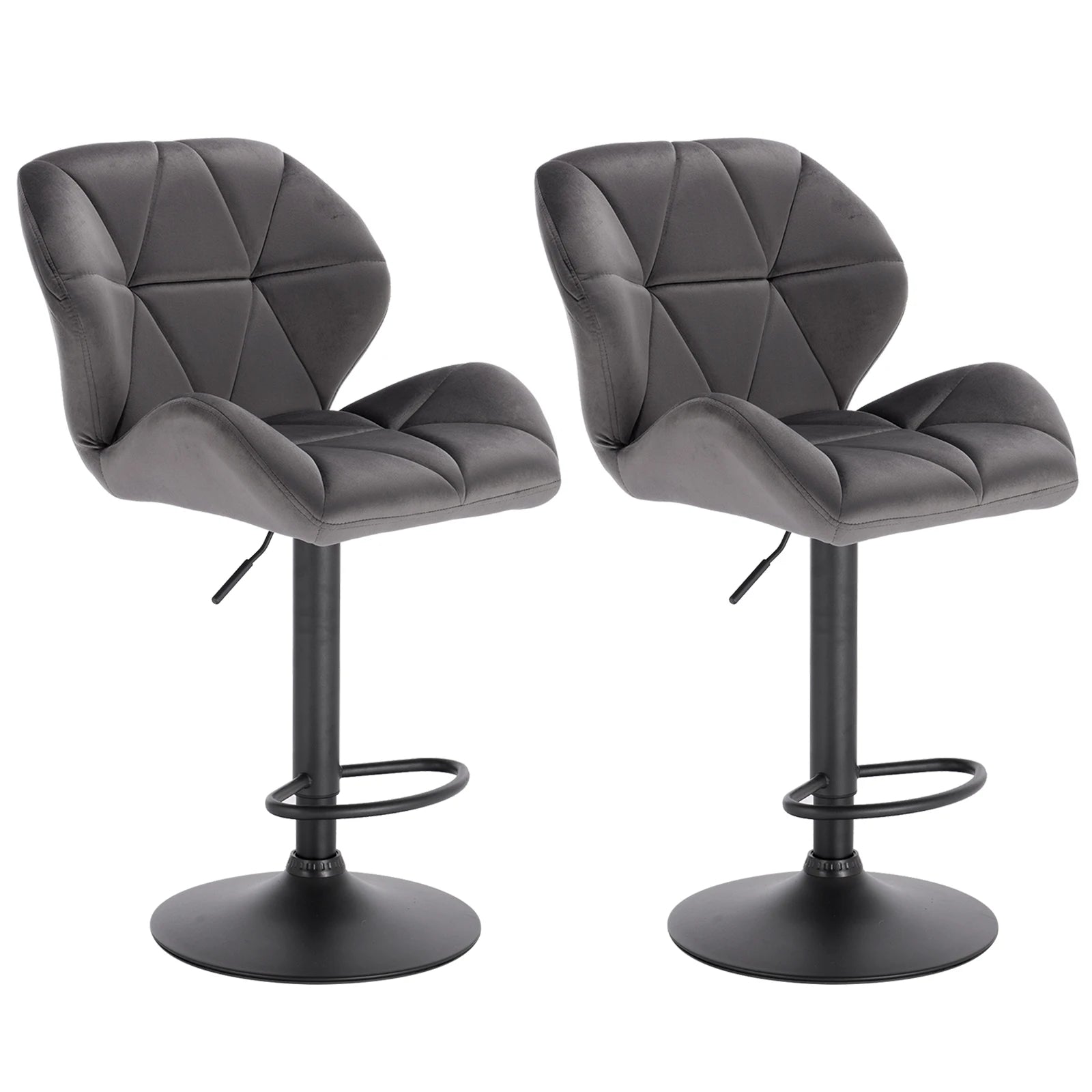 Lot de 2 tabourets de bar réglables avec assise pivotante, vérin à gaz et repose-pieds en acier
