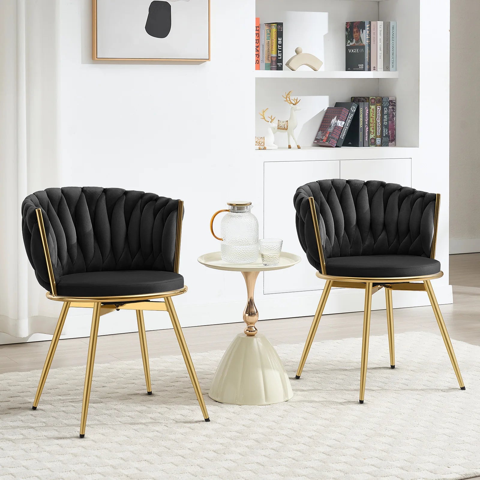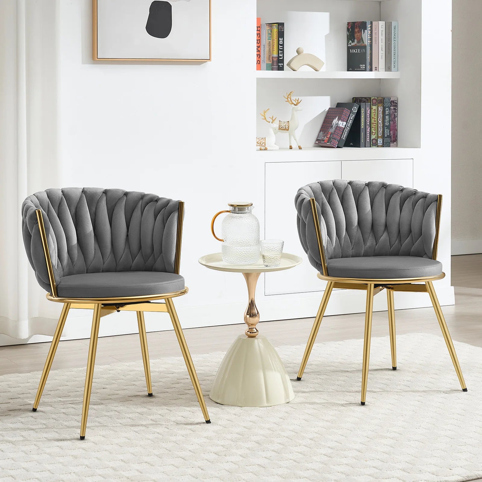 2 PCS Chaises de Salle à Manger Pivotantes en Velours avec Pieds Métalliques – Chaise Ergonomique Rotative pour Salon et Salle à Manger