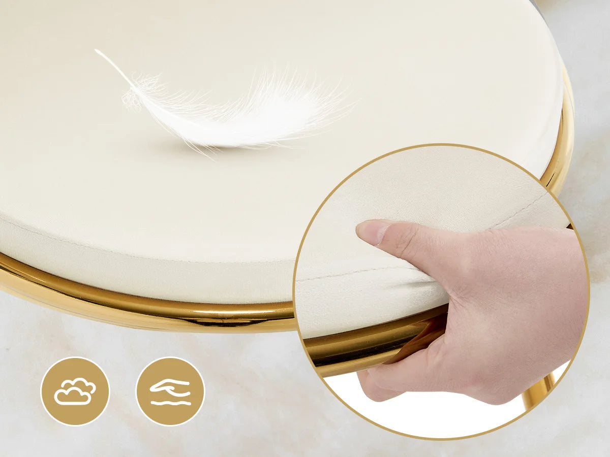 • Confort optimal : L’assise large est rembourrée avec une mousse haute densité et recouverte d’un velours doux et soyeux, garantissant un confort durable même après plusieurs heures assis.